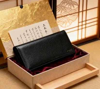 革財布は、贈り物としても人気の高いアイテムです。サンチームでは、製品そのものの品質だけでなく、ブランド価値を高めるパッケージ提案にも力を入れています。